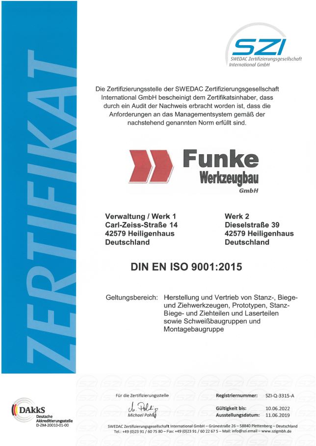 DIN EN ISO 9001:2015 - Funke Werkzeugbau GmbH